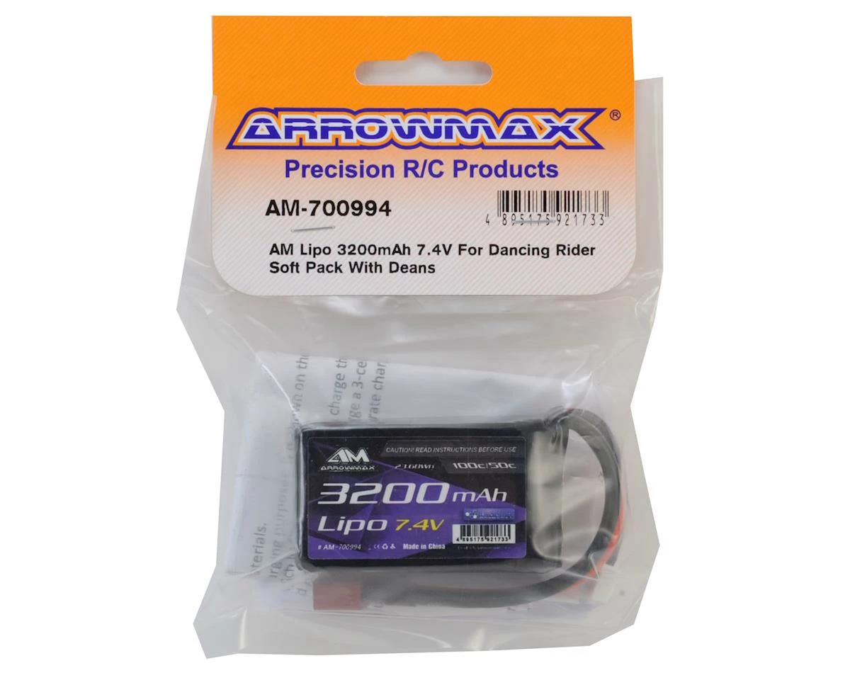 The Arrowmax Tamiya Dancing Rider Soft Pack Lipo Battery is a high-performance 7.4V 2S 3200 LiPo battery for the Tamiya Dancing Rider Trike T3-01 Kit. While the standard pack delivers 1300mAh capacity, this performance pack is more than double the capacity compared to others. With this High-capacity, high performance pack, users can easily achieve more than 1.5 hours of runtime with the standard motor. Battery measures 57mm x 31mm x 31mm in size.