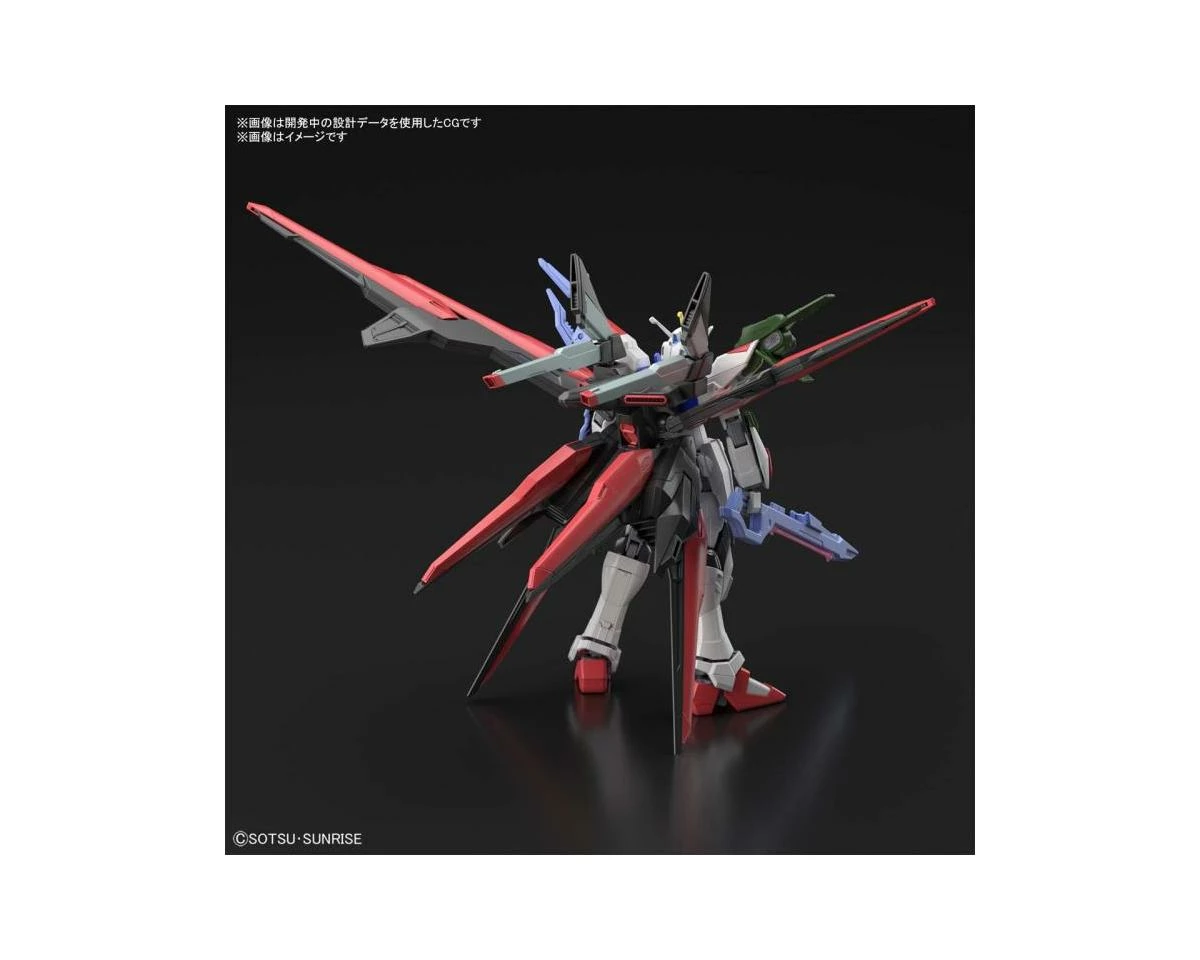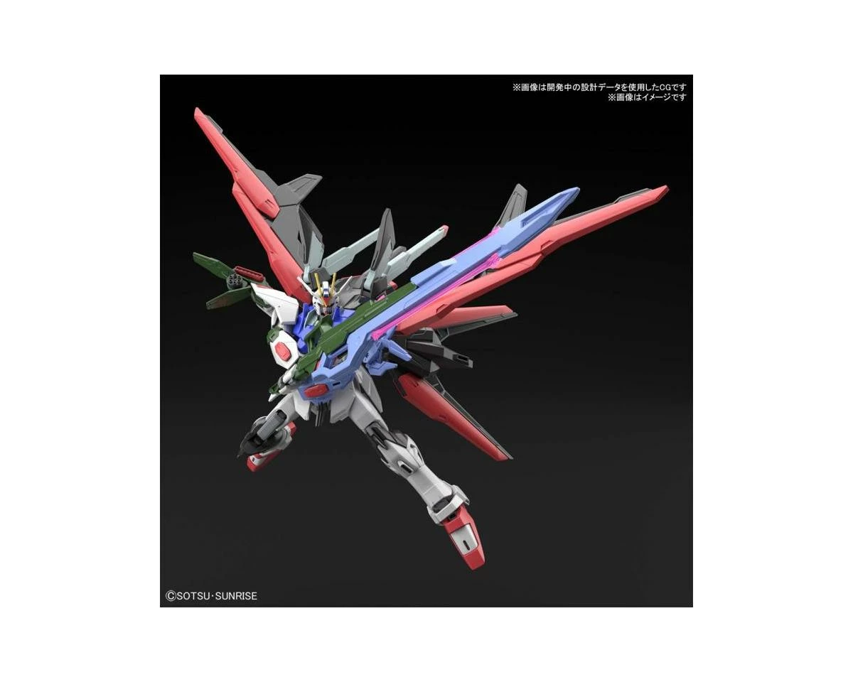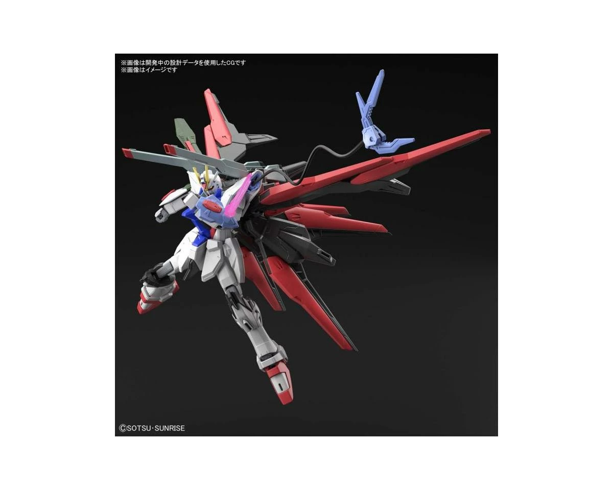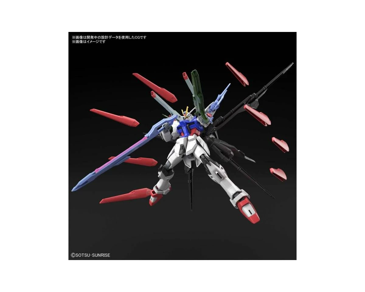 This Bandai Gundam Perfect Strike Freedom 1/144 High Grade Action Figure Model Kit is from the “Gundam Breaker Battlogue” collection. The backpack is the Aile Strike equipped with eight dragoons. The Anti-Ship Sword “Schwert Gewehr” and Hyper Impulse Cannon “Agni” can be connected and arranged into two forms of armament. The claw firing gimmick from the rocket anchor [Panzer Eisen] in the left shoulder is reproduced using a lead wire. Beam parts can be attached to the left forearm. In addition to the combo weapon pod on the right shoulder, the whole body is equipped with a number of armaments derived from Perfect Strike Gundam. Colored, snap together parts do not require paint or glue to finish and pens can be purchased to outline panels and add details.Â