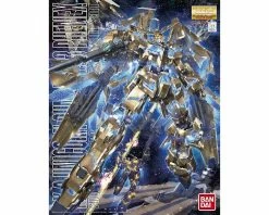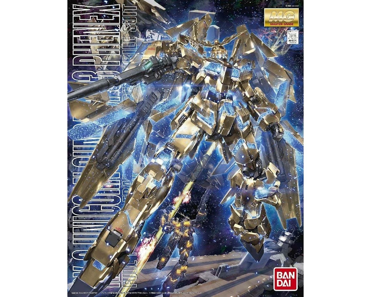 This is the Bandai RX-0 Unicorn Gundam 03 Phenex, a Master Grade Action Figure Model Kit. This release in the Unicorn Series is a dramatic snap together action figure model, molded in bright colors, including gleaming gold. These stunning colors and metallic hues make the Destroy Mode transformation even more impressive. Armed Armor DEs can be mounted on the back for a menacing profile or removed for a more standard Unicorn look. A Beam Magnum and Hyper Bazooka are both included, along with standard transforming Unicorn Shield and two Armed Armor DE shield units.Decals are included to add realism and additional Gundam markers can be purchased to outline panels and add details.