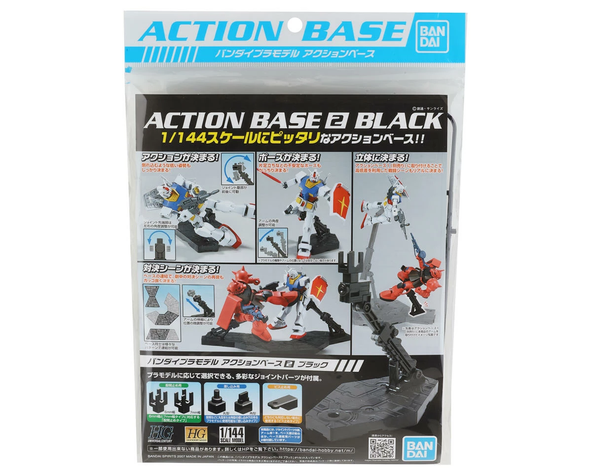 This is the Bandai Spirits Action Display Stand Base 2 1/144. Intended to hold 1/144 scale Gundam models this display stand includes various adapters and holders to fit almost any Gundam kit. The snap together stand is an excellent option to when wanting to display your next Gundam build.Â