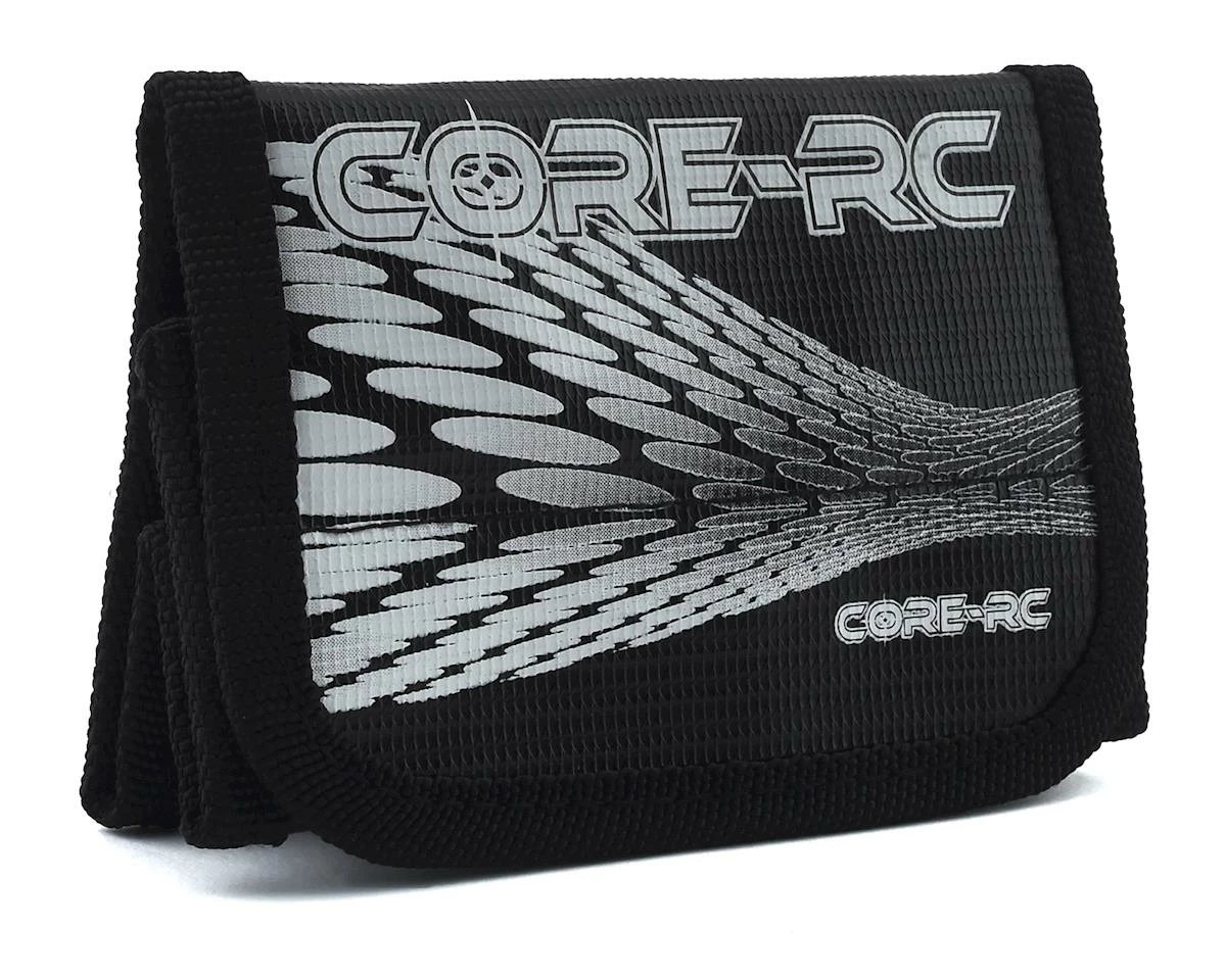 This is a Core-RC 120x75x60mm LiPo Charging Bag V2, designed for storing 1S-Shorty LiPo packs. The fiberglass material can reduce the impact of a fire from your battery, should an accident occur. The bag includes strong hook and loop closure on the main opening and also on the inner flaps for added security. This 1S/Shorty version measures 120x75x60mm and can fit three 1S Shorty batteries. The clean black and white design from CORE RC will blend in with your pit area.