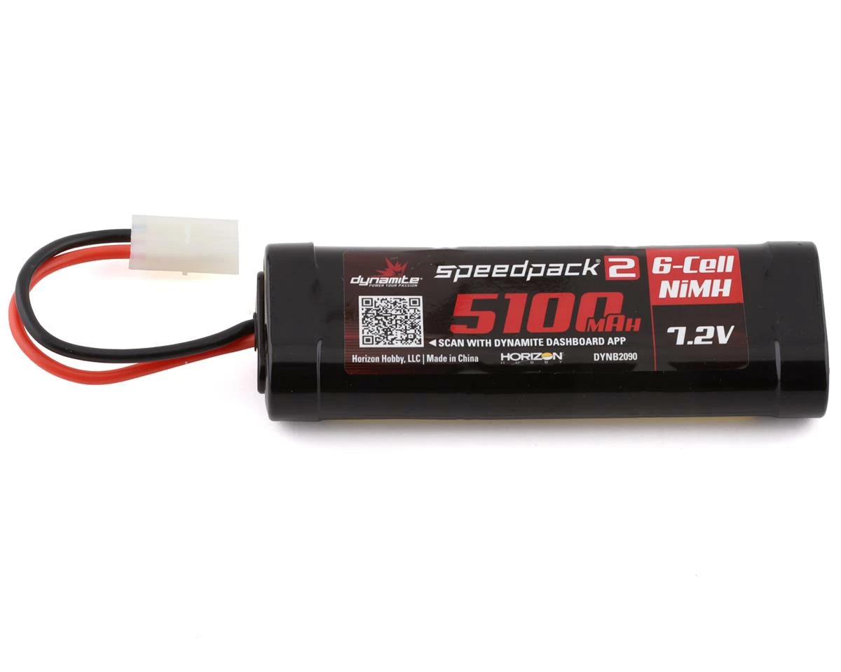 Dynamite “Speedpack2” 6-Cell Flat NiMH Battery with Tamiya Connector. This Nickle battery is compatible with the Dynamite Dashboard app. The Dynamite Dashboard app integrates the batteries with Dynamite’s own Passport Series of chargers and brings real-time monitoring to your mobile device.