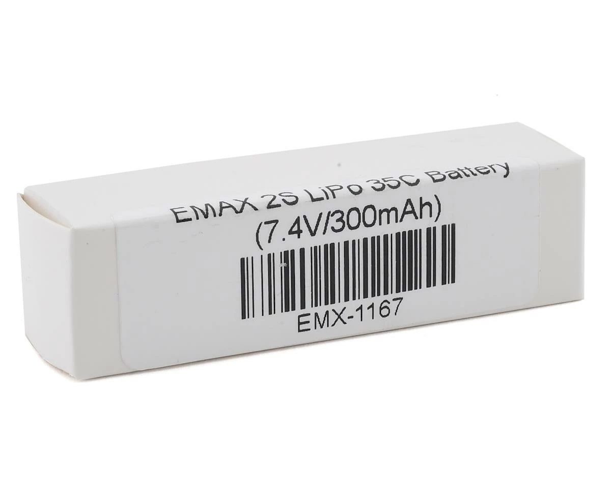 A replacement EMAX 2S LiPo Battery for the Tinyhawk S. 7.4V 300mAh 35C.