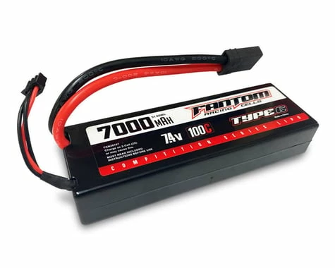 Fantom Competition Series 2S LiPo 100C Battery. This battery was developed with the weekend racer in mind. Fantom Competition Series batteries are just the ticket for club racing. Produced with premium grade materials (mostly from Japan) and with the latest state-of-the-art manufacturing processes.