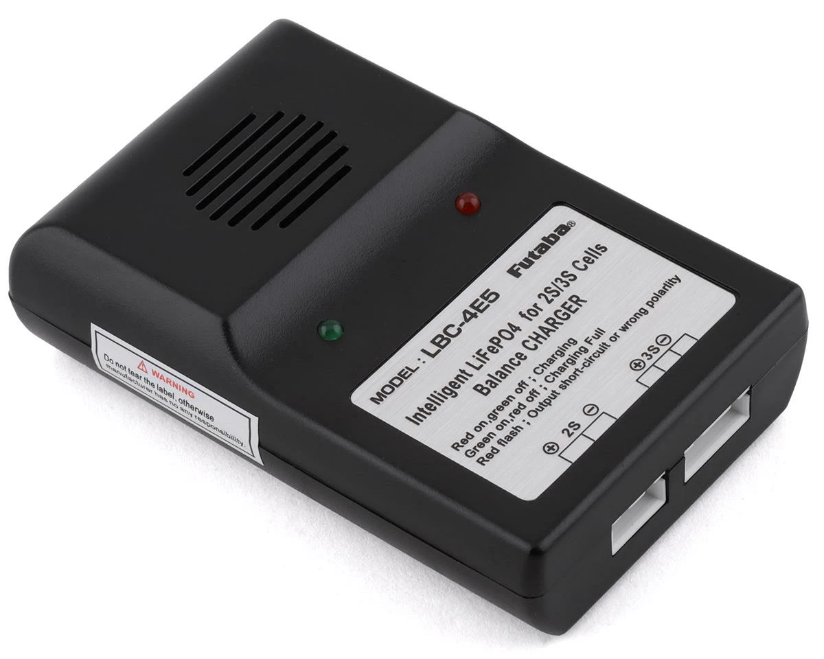 Futaba LBC-4E5 2-3S LiFe Battery Balance Charger. This compact balance charger is designed to work with 2S or 3S LiFe battery packs. Package includes one charger and one power supply.