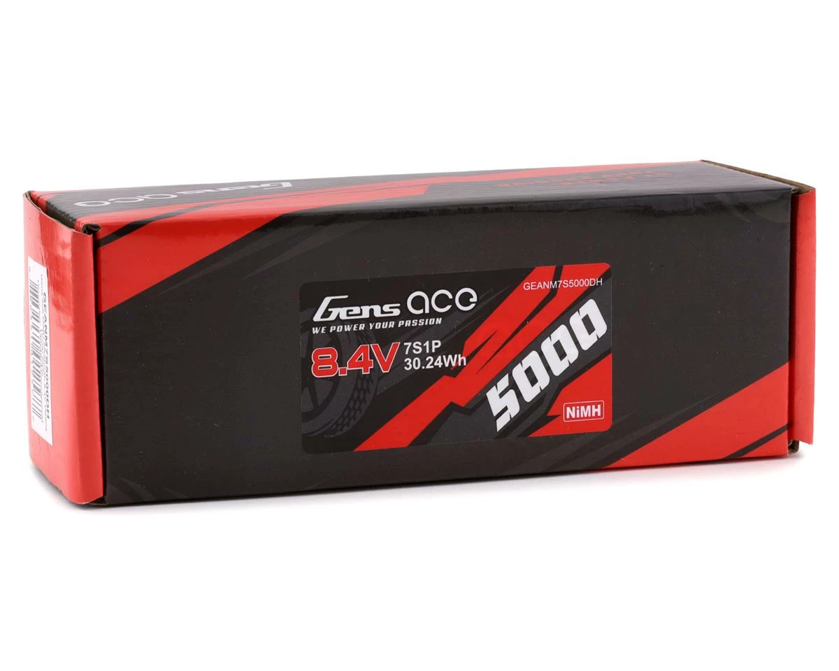 This is a Gens Ace 6-Cell, 7.2V, 5000mAh NiMH Battery Pack with T-Style Deans type Connector. This stick pack is built using quality Sub C size 5000mAh NiMH cells. This pack will fit into any vehicle that uses a hump style battery pack. The recommended charge rate for these batteries is 1C for the best battery life and run time, and we do not recommend you charge them at more than 1C (5A Max).Â