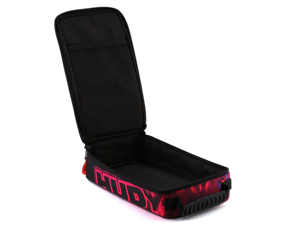 The Hudy 1/12 Pan Car Bag helps to protect one of the single most important pieces of your racing equipment – the car itself. Your valuable race chassis deserves all the protection it can get when traveling back and forth from races and this semi rigid bag helps keep your car safe. The interior of the bag measures approximately 13x8x3″, providing enough space for a car with body attached, and features an interior pocket in the lid that can be used for things like setup sheets or other miscellaneous small accessories.Â