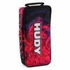 Inside the large opening is a divider which allows the user to separate items, such as instruction manuals, setup books or generally small related items, from the vehicle compartment. On the outside, a zipper closure opens to another slide compartment that can be completely isolated from other items. Large gauge drawstrings are located on the perimeter which when pulled together clinches the bag at the top. Heavy stitching is used throughout to help maintain construction and the main material offers some resistance to moisture in select closed areas. Small holes are located at the bottom of the outside pouch for ventilation. The bag is topped off with printed “JConcepts Racing Team” logo for authenticity and brand loyalty.