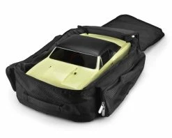 This is the JConcepts SCT Backpack. Backpacks are not just for school anymore! They are for racing, bashing, and getting to the track on time. The JConcepts SCT backpack is a clever way to get your Short Course truck and its accessories to and from the race track or favorite bashing spot. Typically, when a driver packs for a day of racing or bashing the racing bags are full of spares, chargers, electrical and other miscellaneous items. The SCT backpack is the perfect way to travel with a vehicle when space is limited or quick access is critical. If you want to pack light for a quick few runs down the street or for a complete day at the track, the SCT backpack is an excellent choice.