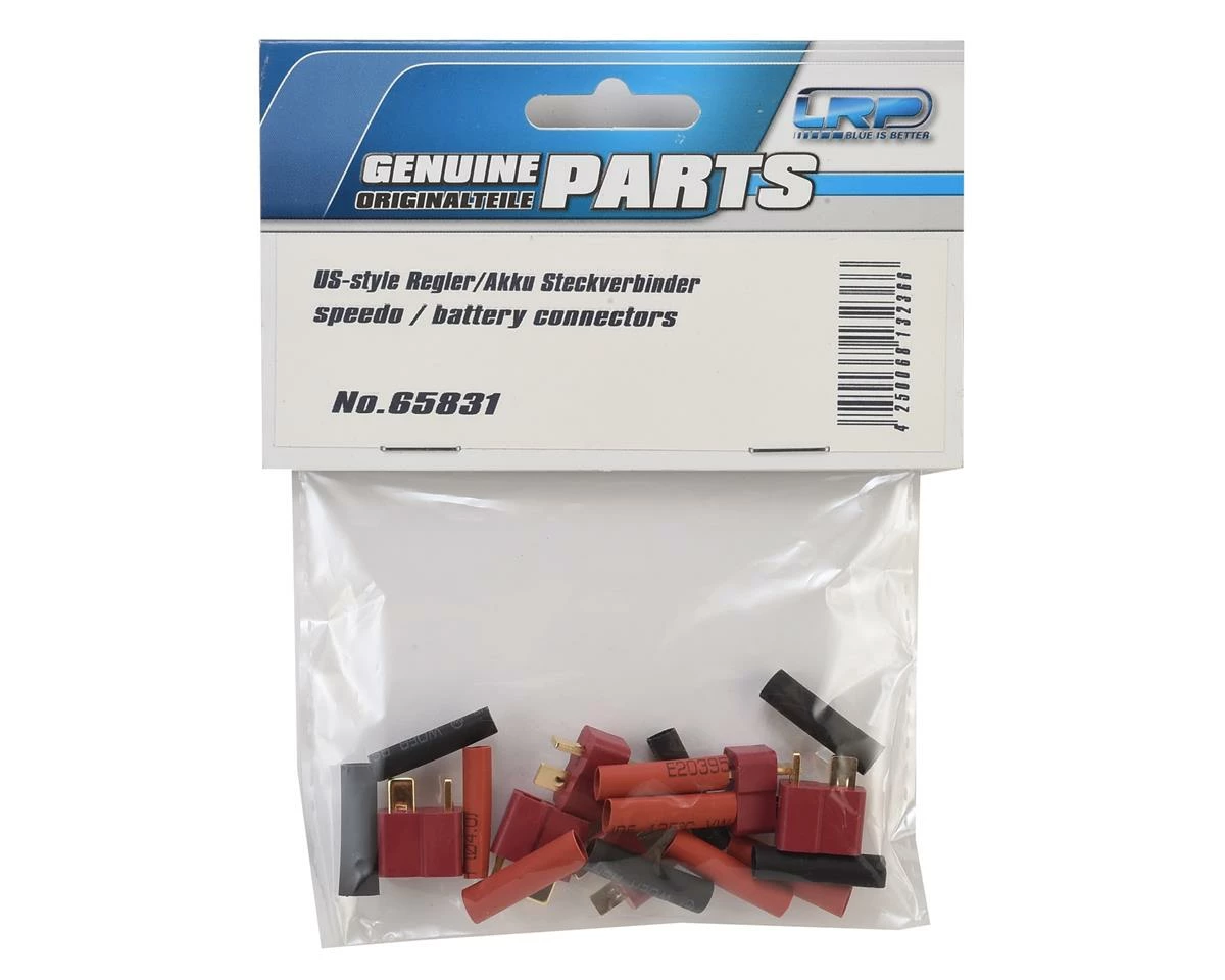This is an LRP US-Style T-Style Speedo/Battery Connector Set, including three female and three male connectors and shrink tubing.