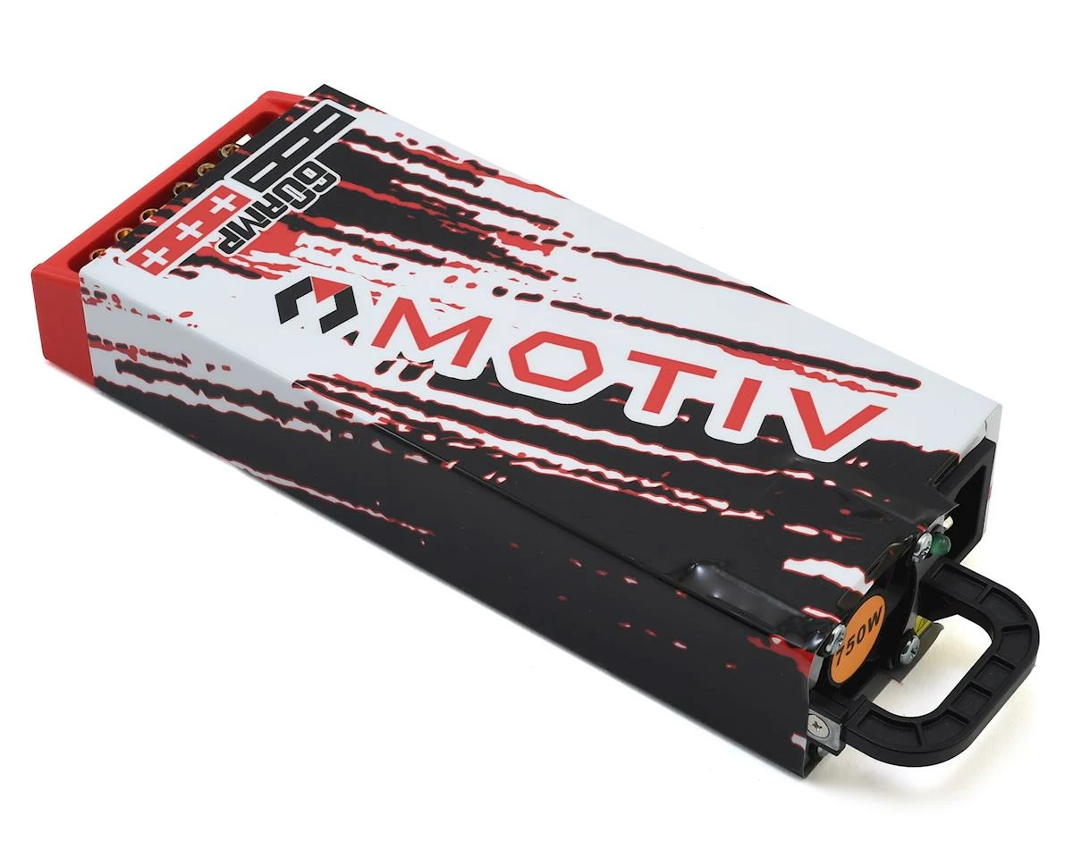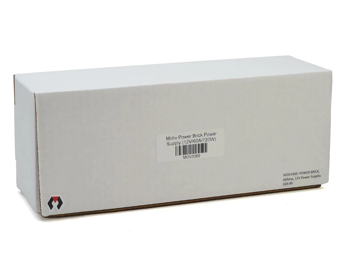 The Motiv Power Brick Power Supply provides up to 60 Amps and 720 Watts of max power, all in 8.5″ long, 3.4″ wide and 1.5″ thick form factor. On one end of the unit, three pairs of bullet DC outputs provide plenty of connectivity, while on the other end a cooling fan, handle and LED can be found. Additionally the Motiv Power Supply includes a sleek 3D printed red protection plate that covers 3 sets of output terminals to ensure that the output terminals do not get damaged or worse…broken off. The entire unit is then wrapped in a Motive livery, and equipped with one AC (North America) power cord. Â