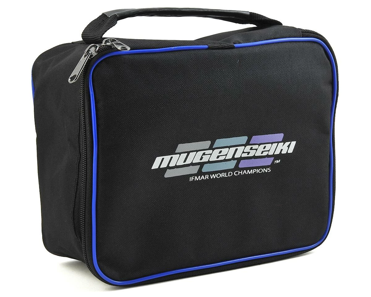 The Mugen Shock/Diff Fluid Bag will hold up to 26 bottle of Flash Point diff and shock oil bottle. It can also be used to store nitro engines, parts, tools, chargers and more! The bag measures 10″ x 8″ x 4.5″ and features the Mugen Seiki logo on the lid.