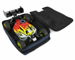 Designed for racers looking for a convenient solution to transport a nitro or electric buggy, the bag is a great way to keep your buggy from rolling around in your car or back of your truck, containing all the dirt and grime after a long day at the track. It also fits great on top of your hauler bag when loading or unloading at the track.