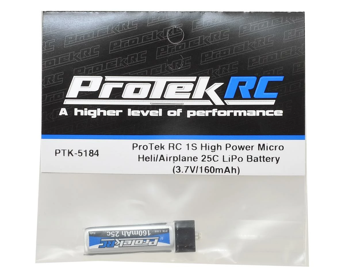 This is the ProTek R/C 1S 160mAh, 25C Micro Helicopter/Airplane Lithium Polymer battery pack. This pack will fit E-Flite and Parkzone products that use 70mah to 150mAh battery packs. When used in aircraft that normally use 70mAh batteries, these batteries will provide better performance and longer flight times!