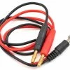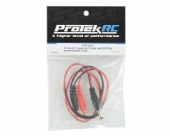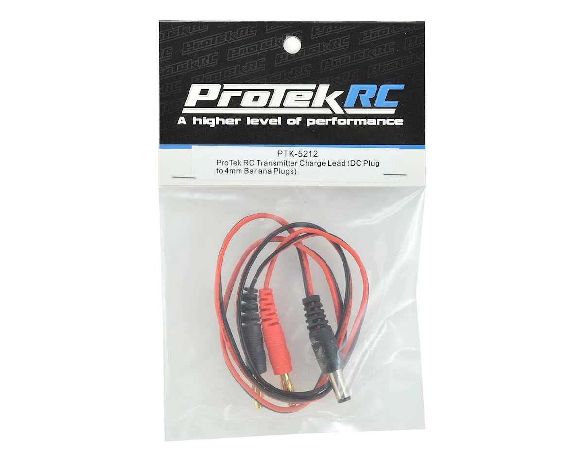 This is one transmitter charge lead from ProTek R/C. This charge lead has a DC style connector on one end (inner plug is Positive – 2.5mm, outer ring is Negative – 5.5mm) that will fit most radio systems, connected to 4mm banana plugs with high quality 22awg silicone wire. Be sure the check the polarity of your radio system charge connector when you plug this charge lead into your charger.