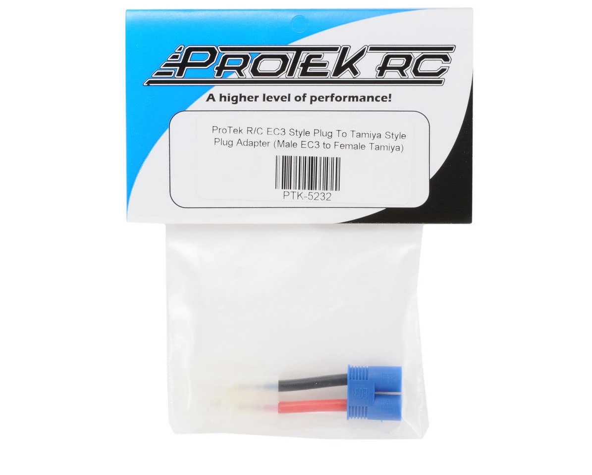 This is a male EC3 style plug to female Tamiya style plug adapter from ProTek R/C.