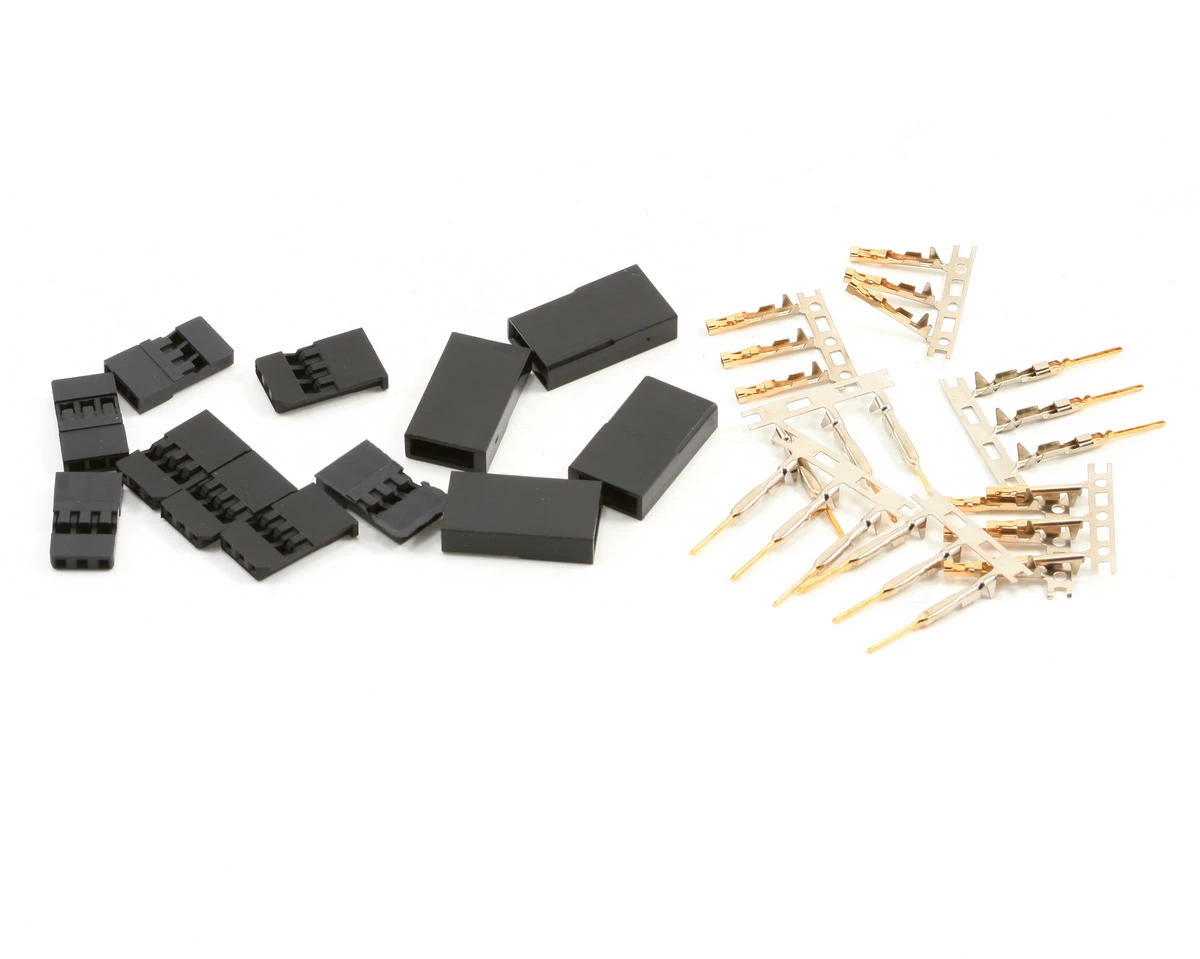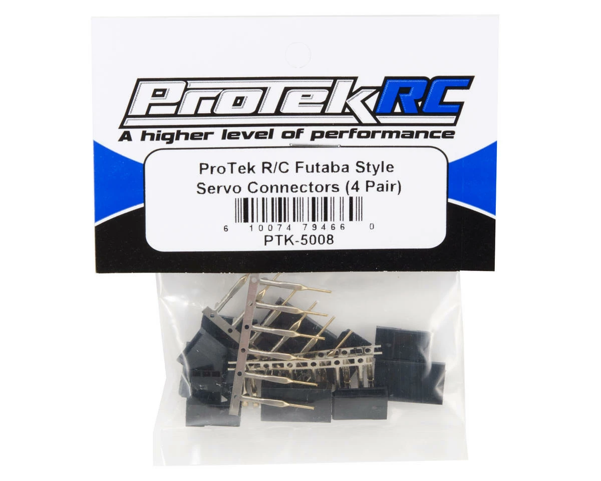 This is a pack of four pairs of Futaba style servo connectors. Included are four futaba female and four futaba male connector housings and eight sets of connector pins. Also included are four JR style male connectors so you can make up a JR to Futaba lead if desired.