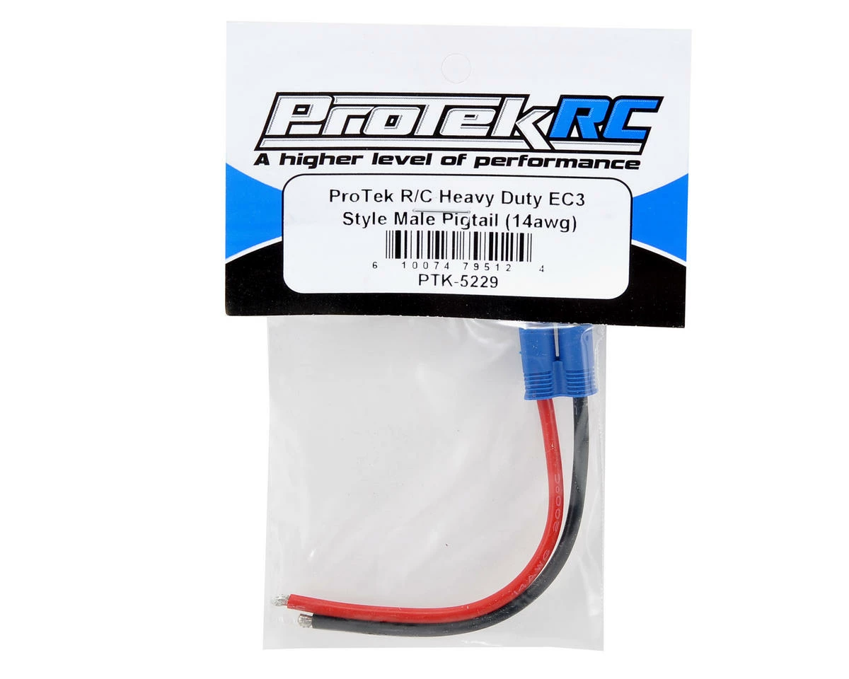 This is a male EC3 style plug pigtail from ProTek R/C. The EC3 style plug is connected to 10cm of 14awg silicone wire.