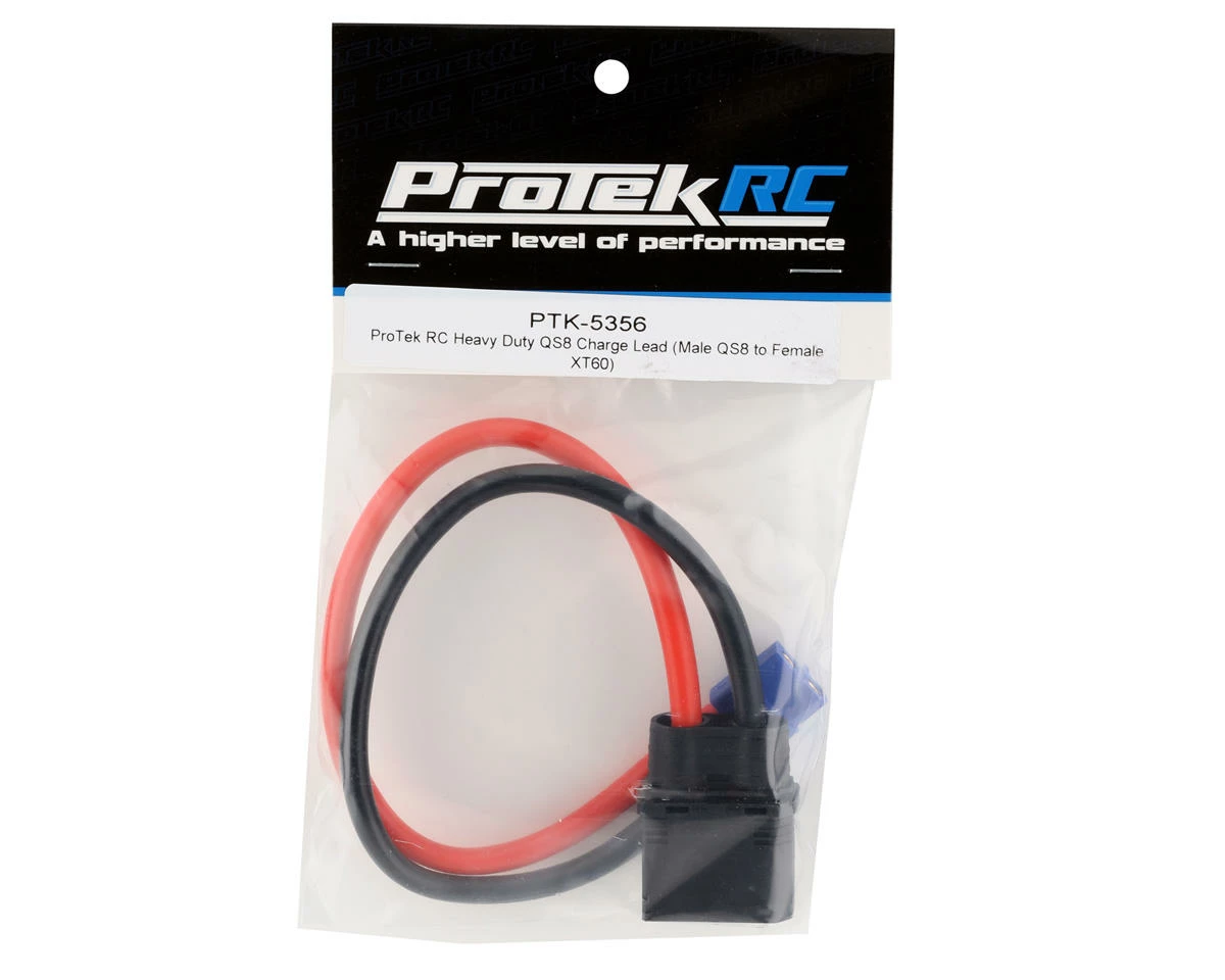 This is the ProTek RC Heavy Duty QS8 Charge Lead, featuring a male QS8 on one end connected to XT60 with high quality 10awg silicone wire. Package includes one charge lead.