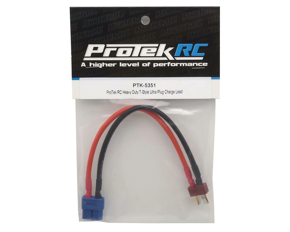 The ProTek R/C Heavy Duty T-Style Charge Lead Adapter features a “male” t-plug, connected to a female XT60. Thanks to the 6 inch long 14awg wire, this adapter can be used for heavy duty charging and can handle charge rates more than 20 amps. This adapter can also be used for ESC to battery connections in some applications, allowing you to connect your T-style plug equipped battery to an ESC with an XT60.Â
