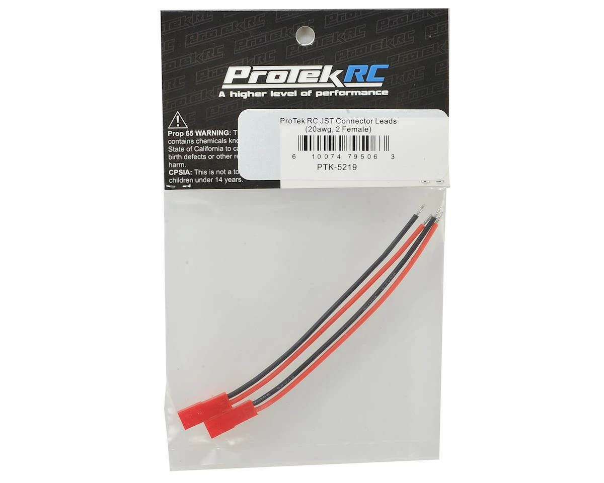 This is a set of two female JST connector leads from ProTek R/C. The JST connectors are attached to 10cm of 20awg silicone wire.