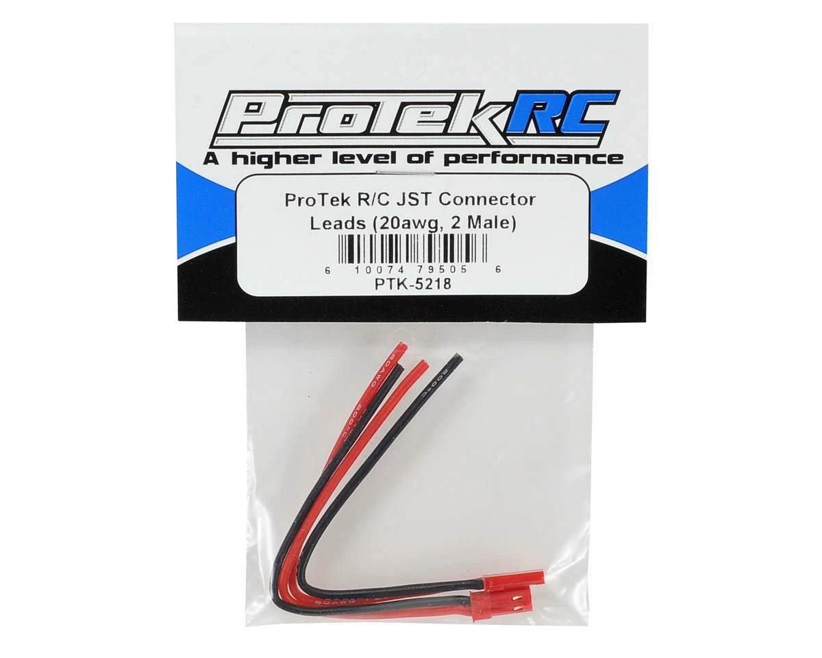 This is a set of two male JST connector leads from ProTek R/C. The JST connectors are attached to 10cm of 20awg silicone wire.