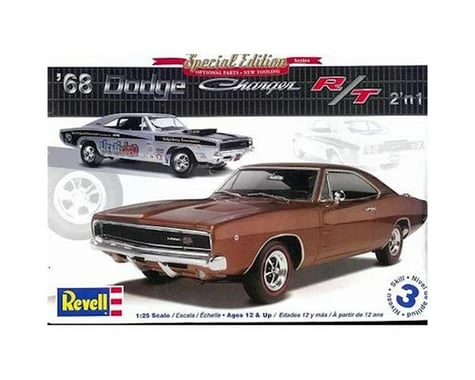 Revell Germany 1/25 ’68 Dodge Charger 2 ‘n 1 Model Car Kit. This car kit comes with an extremely detailed interior and chassis kit. Package includes one model car kit.