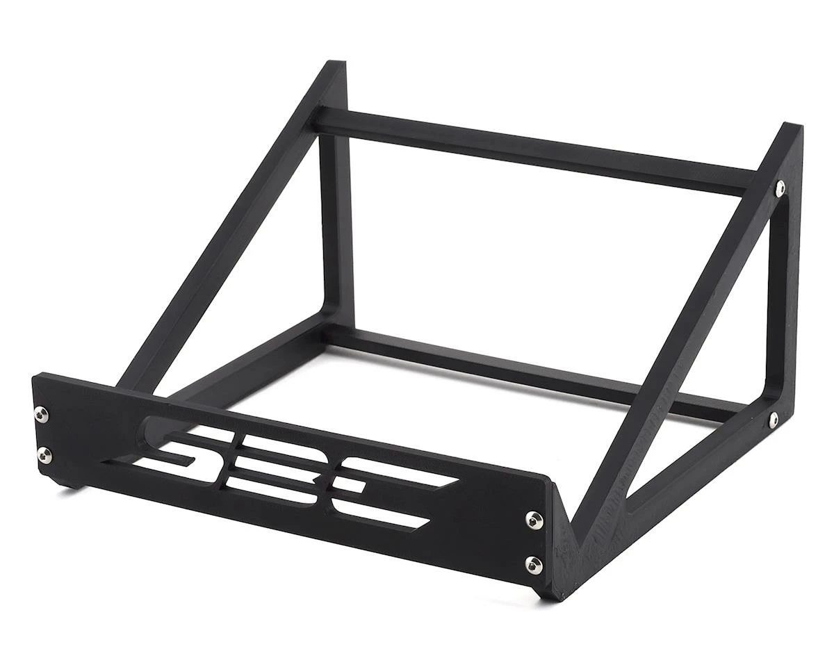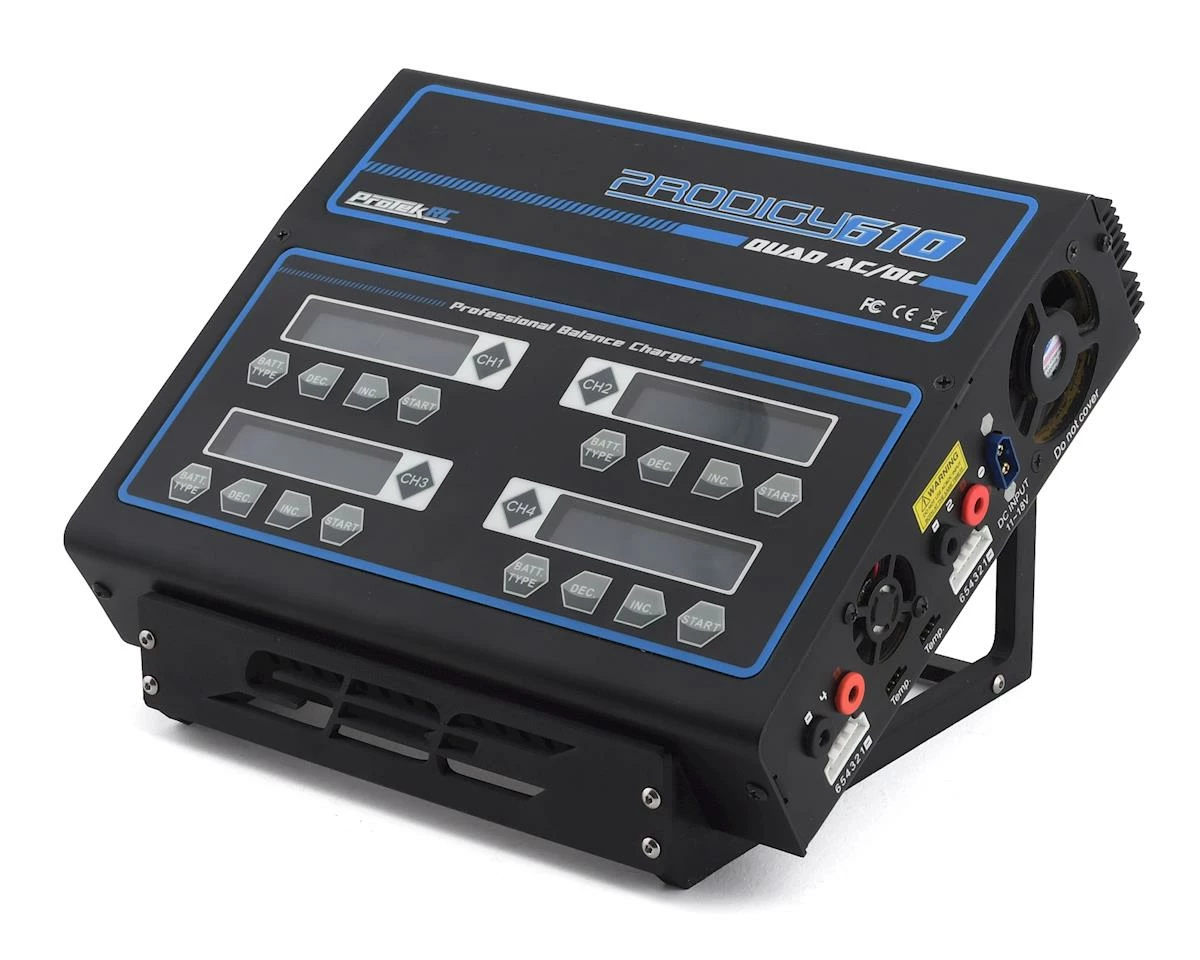 The Scale by Chris Large ProTek Charger Stand is an incredibly useful accessory developed specifically for the ProTek RC 610 Quad and 625 Duo chargers. This stand will improve functionality and ease of use by raising up the the back of the charger, making it easier to view the screens and access the buttons. The five piece design features two angled side plates, with two rear cross braces and a front plate with SBC logo, and its all held in place with included stainless steel hardware. The stand measures in at approximately 180mm wide, and 180mm long, so it will fit any charger with a footprint larger than 180x180mm. Plus, you can use the area beneath the charger to keep extra charge leads easily accessible, as well as to stash the power cable out of the way.Â