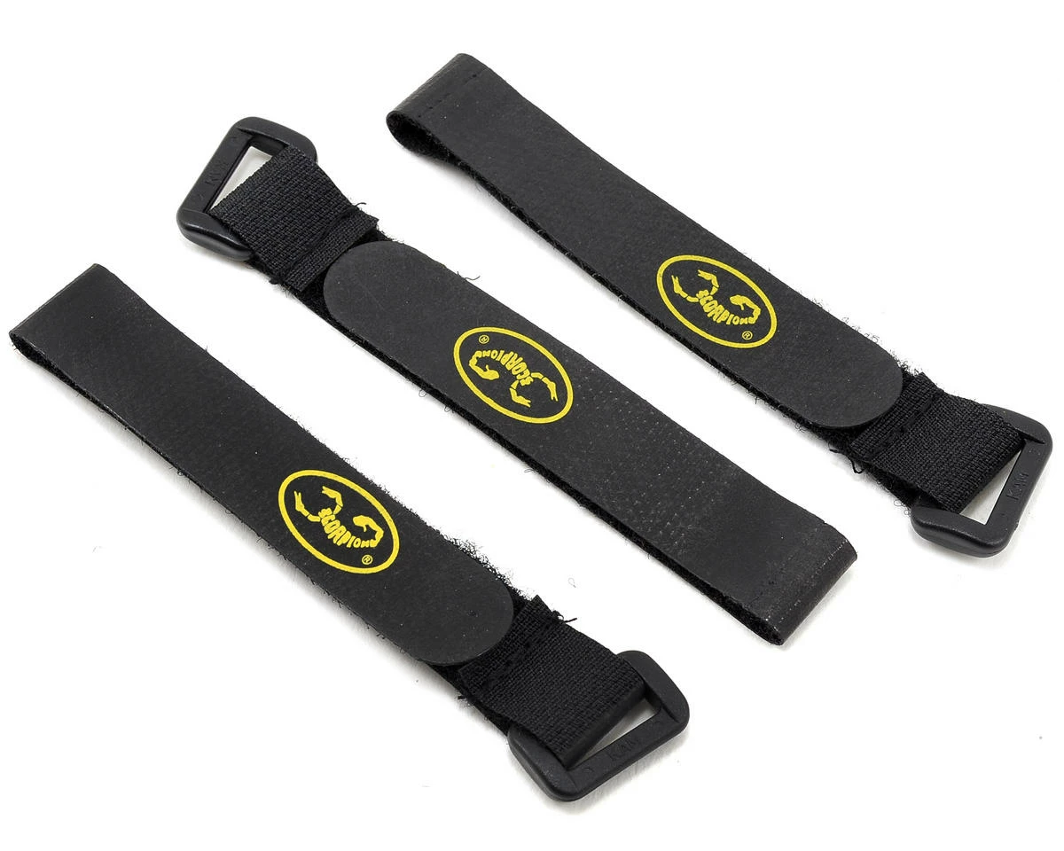 Scorpion Lock Straps feature a rubberized non-slip surface to provide maximum grip on the battery. This lock strap was developed for 250 to 280 size multirotor applications, and dramatically reduces the chances of the battery coming loose during flight. Strap measures 195mm long total, with a 75mm long hook section and 105mm loop section.