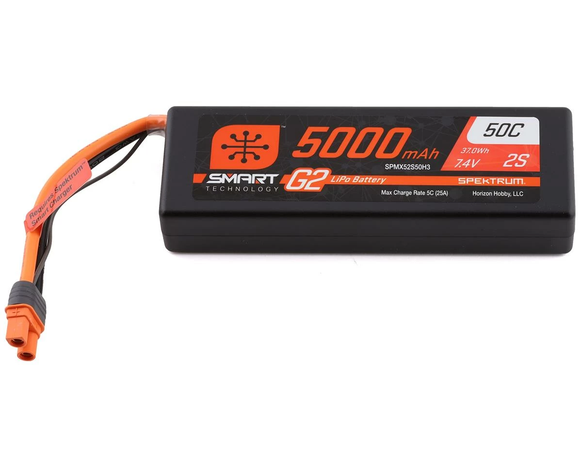 The Spektrum RC 2S Smart LiPo 50C Hard Case Battery Pack with IC3 Connector provides pilots and drivers with an array of Smart benefits; Not only are charging parameters and performance data stored and uploaded automatically to Smart chargers, but no balance lead is needed — just one easy IC connection.
