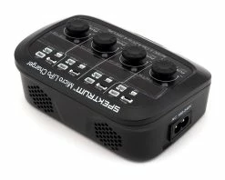 The Spektrum Micro 4 charger is a 4-port tool for the RC pilot who wants the ultimate in 1S LiPo battery charging. Featuring Spektrum Smart Charging technology, its digital LED status screen delivers vital battery information in a clear manner the instant you connect. Its compact all-in-one design incredibly offers four independent charging channels, each with enough built-in connectors so that charging multiple 1S batteries with the highest level of precision is easy.