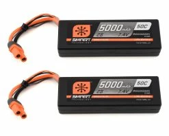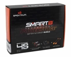 This is a Spektrum RC Smart PowerStage 4S Bundle with two 5000mAh 2S Smart LiPo Hard Case Batteries. The Smart Technology Powerstage Bundle is a one-box solution for vehicles requiring top performance. Designed with the simplicity of Smart Technology, this bundle includes two 5000mAh 2S 50C Smart LiPo batteries, one S2100 Smart AC Charger and two charge adapters to charge your IC5 batteries on the S2100 charger.