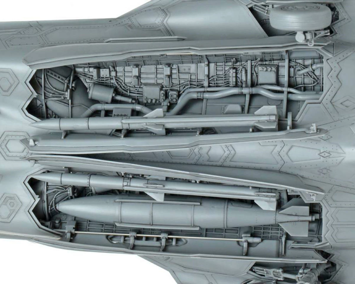 - Choose from open or closed weapons bay covers and canopy (the latter is interchangeable), up or down flaps, and extended or retracted boarding ladder.