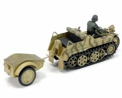 The Tamiya German Sd.Kfz.2 Kettenkraftrad 1/35 Model Kit in Mid Production recreates an updated version of the 1973 1/35 Military Miniature Series Kettenkraftrad (35029). The kit depicts a mid-production version, as opposed to the early-production version seen in the 1973 release. The model gives you more realistic scenery options with three infantry figures and a cart also included. The Kettenkraftrad was originally developed for commando units, but was found to be highly useful on the poor terrain in Russian territory. Of its numerous versions, the mid-production was the most manufactured, and was used to transport materials in the latter half of WWII.