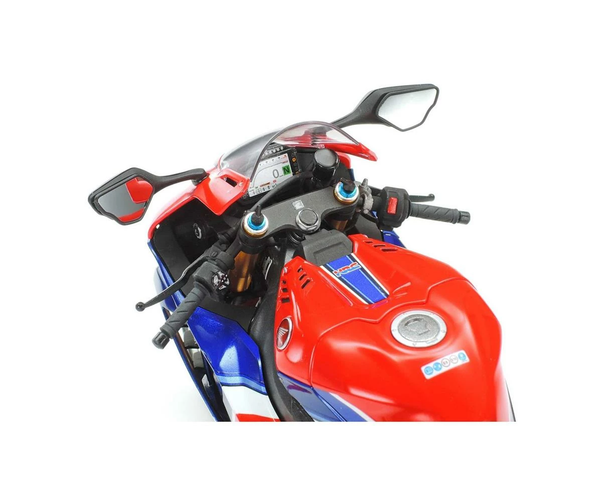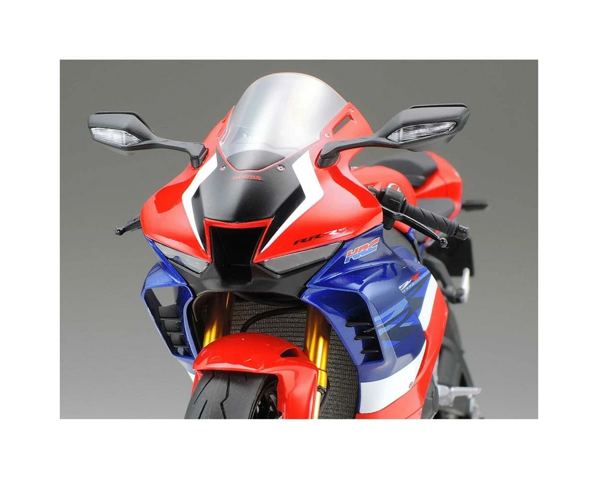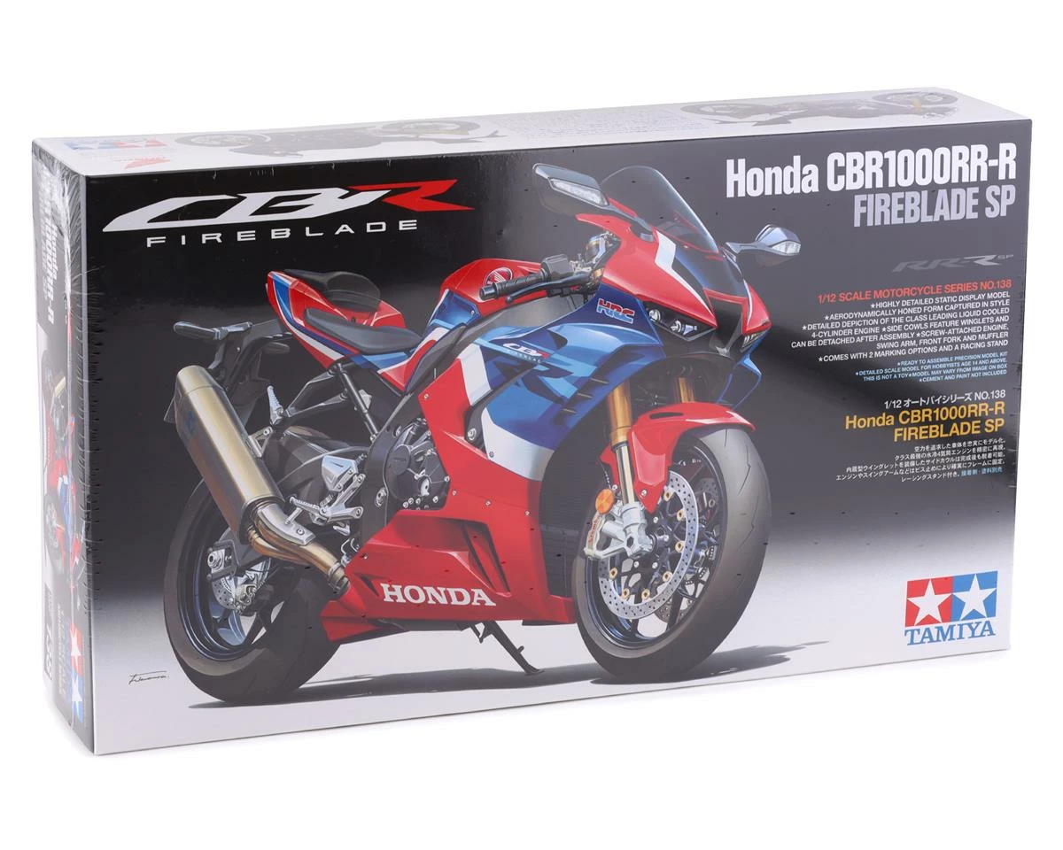The Tamiya Honda CBR1000RR-R FIREBLADE SP 1/12 Motorcycle Model Kit recreates the looks and styling of the CBR1000RR-R Fireblade SP. Tamiya took car to give scale details to closely match the full size model. Featuring distinct circuit-oriented looks, an extremely scale 1,000cc inline-four engine, finely honed cowl designs and scale Akrapovic muffler. Included with the kit are decals for either Grand Prix Red or Matte Pearl Morion Black. Package includes one motorcycle model kit.