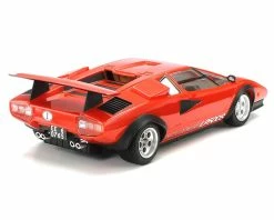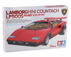 The Tamiya 1/24 Lamborghini Countach LP500S is a red plated version of a modern classic Lamborghini Countach. It recreates the special Countach made for Walter Wolf by Lamborghini, to meet his demands for even greater performance than the LP400 base model. Three in total were produced for Wolf, with features such as five-hole Bravo wheels, wide Pirelli P7s, front spoiler and a rear wing. The final two special models received a 490+HP 5.0L V12 engine.