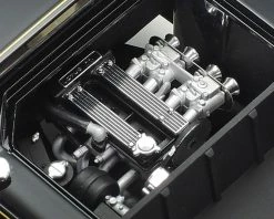 - With the removal of the hood, the engine can be viewed even after completion. It features twin carburetor, 5-speed transmission, and shift linkage in the rear, plus new air funnels