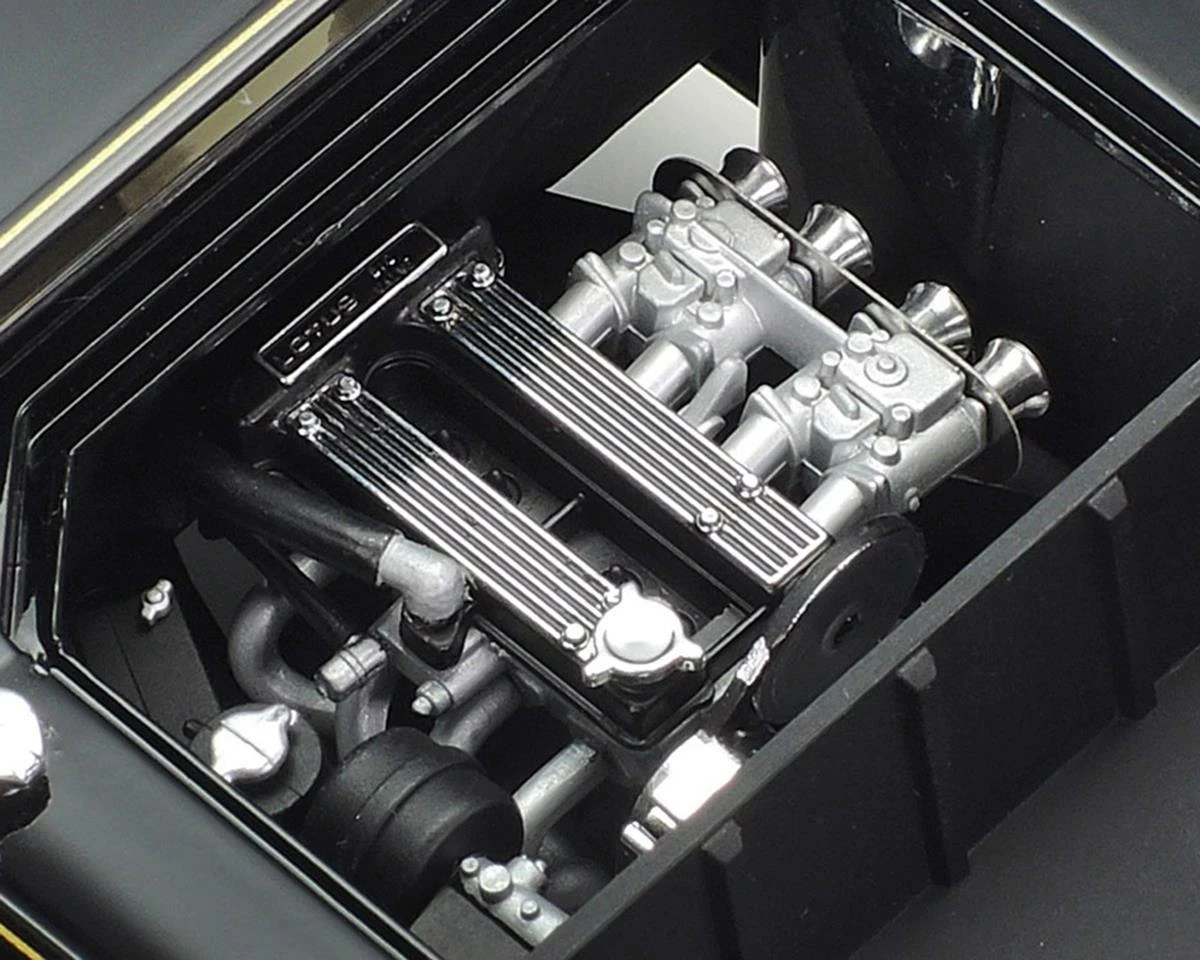 - Lotus logo, emblems and mirror surfaces are recreated by metal transfers