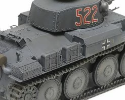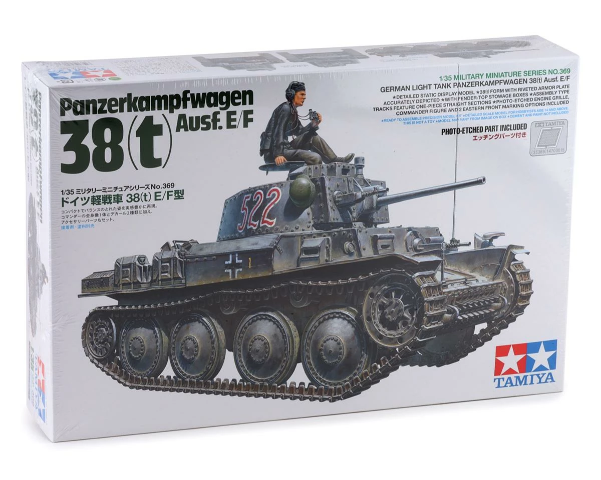 The Tamiya Panzer 38(t) Ausf E/F German Lt 1/35 Model Tank Kit recreates one of Germany’s formidable lightweight tanks. This subject in fact started life as a light tank developed for Czechoslovakia, but was adopted and renamed 38(t) by German forces after their occupation of the country in 1939. It was equipped with a 3.7cm main gun and could reach speeds of up to 42km/h powered by the 125hp engine. A number of variants were produced, of which the Ausf. E/F 38(t)s were manufactured over a one-year period from November 1940; they featured improved armor and were thrown into the conflict with Soviet forces after the start of Operation Barbarossa.