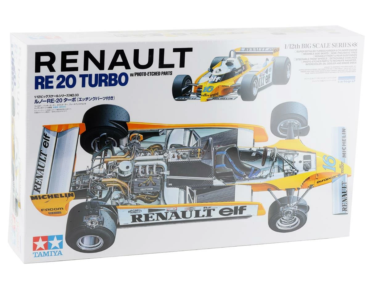 The Tamiya Renault RE-20 Turbo 1/12 Plastic Model Kit brings this iconic car back to life. Known as the first turbo engine formula one car the RE-20 paved the way for innovation in 1977. With a 30kg weight reduction and 1.5-liter V6 DOHC twin turbocharged engine capable of around 520hp it is easy to see how this car would have been a dominant force on the race track. Tamiya has spent the extra time making sure every detail is faithfully recreated.Â