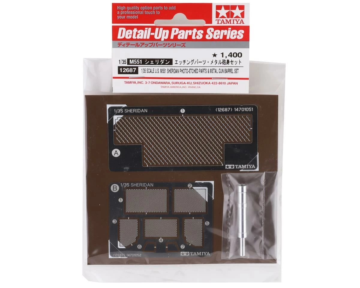 The Tamiya U.S. M551 Sheridan 1/35 Metal Gun Barrel & Grille Set is an optional accessory that makes it easy to add even more realism to your Vietnam War-era M551 Sheridan. This detailed set includes a precision gun barrel and photo-etched parts.