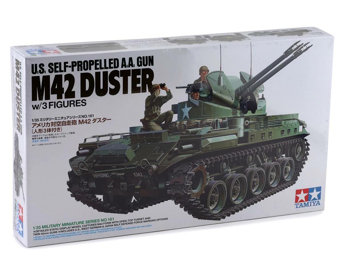 The Tamiya US Army A.A. Gun M42 Duster 1/35 Model Tank Kit replicates the M42 Duster – an anti-aircraft vehicle used in conjunction with tank units. The Duster was equipped with a pair of 40mm cannons on an open-top turret, and powered by a 500hp engine that let it achieve speeds of up to 70km/h. It was accepted into service with the U.S. Army in 1953 and proved an effective anti-aircraft weapons system.