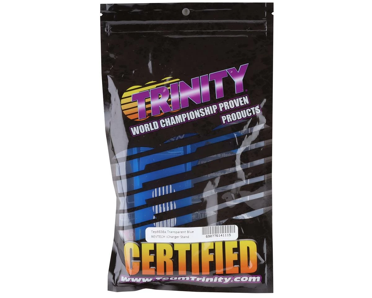 The Trinity iCharger Charger Stand is made to hold the iCharger 308DUO, 406DUO or 4010DUO, as well as other similar size and shape chargers. The design allows the stand to nest over the top of small 75amp power supplies. This stand is cut from thick transparent blue polycarbonate that snaps together for a secure fit.