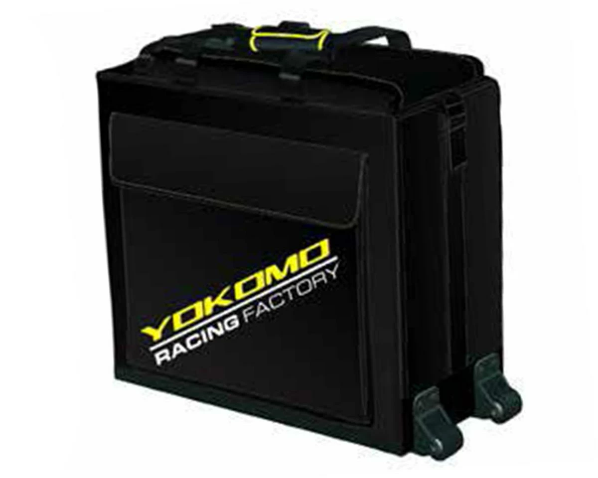 The Yokomo Racing Hauler Pit Bag V is an updated version of the Pit Bag IV. This bag features redesigned logos, and is a great option to haul around 1/10 on road, drift and off road models. Featuring a roll up main flap that exposes four removable drawers – two large 50.8×12.7×22.8cm lower drawers for cars or large pit station tools, with two smaller 25.4×12.7×22.8cm upper drawers that are perfect for smaller parts. Plus, there is a pocket on the top designed to hold hand tools, a pocket on the back for a setup board, and a pocket on the side for setup sheets and manuals. Two heavy duty wheels and a telescopic handle allow for easy transport and round out the package.